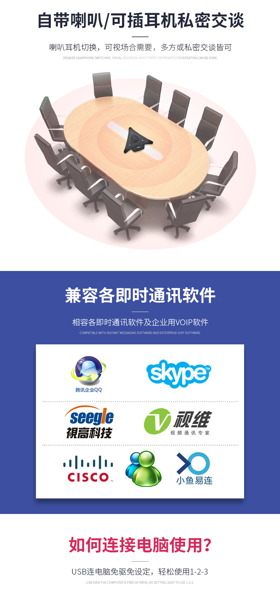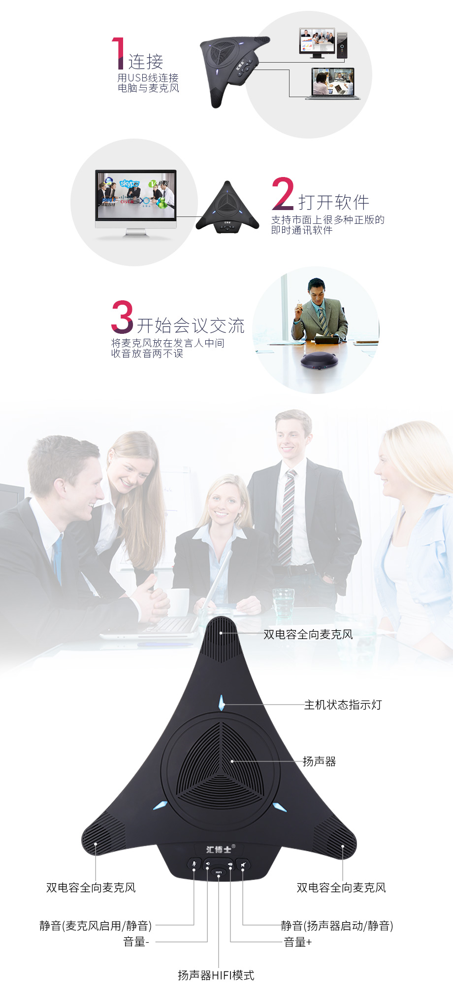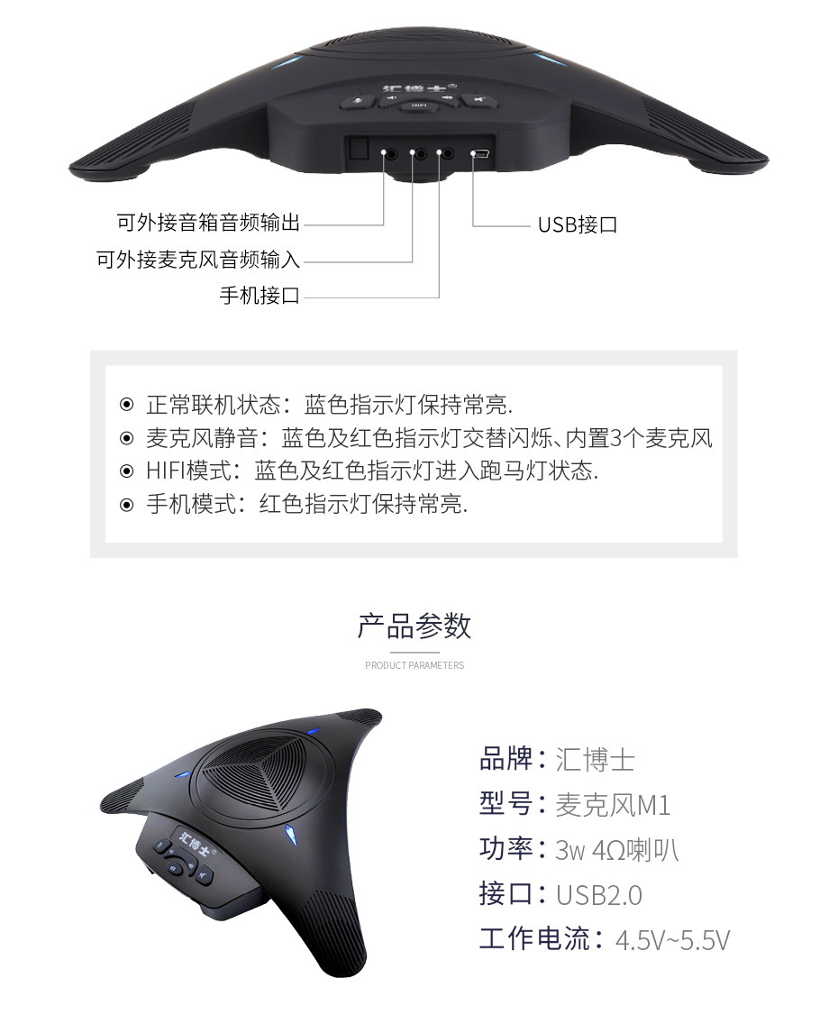 汇博士M1 会议全向麦克风/USB视频会议麦克风